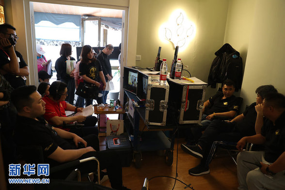 图为剧组和导演在拍摄现场监控着画面。 新华网 李清摄