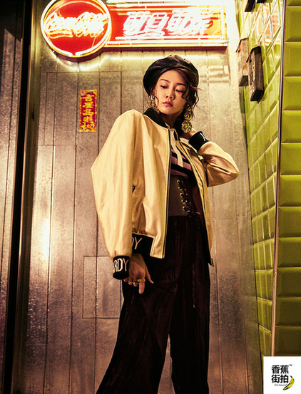 近日,演员苗苗曝光了一组写真大片,镜头里,苗苗身处色彩斑斓的香港大排档之中,身穿粉黑条纹针织衫搭配丝绒阔腿裤,外搭金色棒球夹克别具格调;皮质贝雷帽搭配亮片大耳环,一半俏丽一半帅气;发丝微卷,满满的少女感又不失妩媚,整体着装造型充满层次,混搭出了千禧年的潮酷态度。