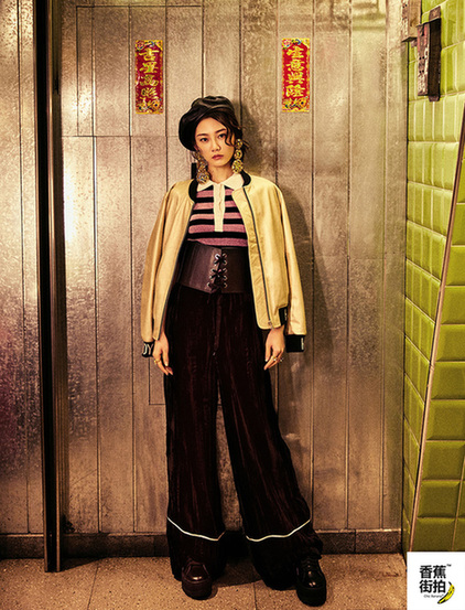 近日,演员苗苗曝光了一组写真大片,镜头里,苗苗身处色彩斑斓的香港大排档之中,身穿粉黑条纹针织衫搭配丝绒阔腿裤,外搭金色棒球夹克别具格调;皮质贝雷帽搭配亮片大耳环,一半俏丽一半帅气;发丝微卷,满满的少女感又不失妩媚,整体着装造型充满层次,混搭出了千禧年的潮酷态度。
