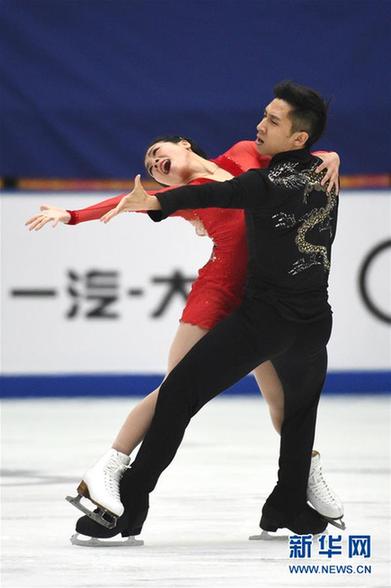 11月4日,中国选手韩聪/隋文静(后)在双人滑自由滑比赛中。他们以231.07分的总成绩获得双人滑冠军。当日,2017中国杯世界花样滑冰大奖赛在北京继续进行。新华社记者 鞠焕宗 摄
