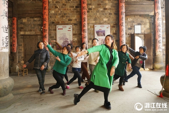 2018年1月17日,磐安县文化馆老师正在尖山镇新宅村帮助村民文艺爱好者排演节目。这些节目将在村非遗演艺基地为游客和村民演出。近年来,磐安县在“送文化”同时,注重向基层“种文化”,强化群众文化的“造血功能”。目前,全县已培训业余文艺队伍1193支,极大丰富了村民文化生活。(浙江在线记者杨晓轩 李翔 拍友 陈蓓蓓 摄)