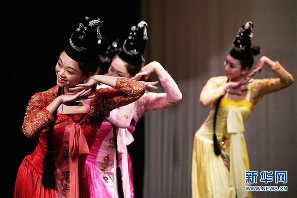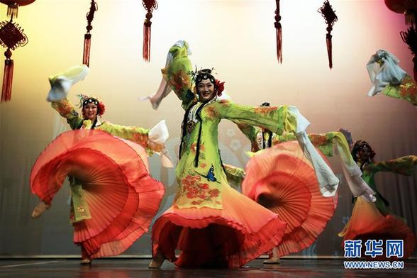 2月5日,在约旦首都安曼,演员在“欢乐春节”演出中表演舞蹈。新华社记者林晓蔚 摄