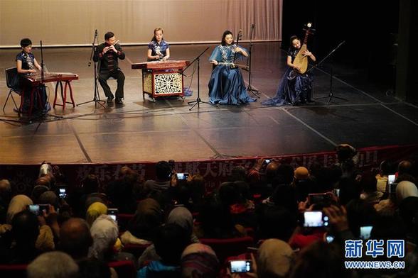 2月5日,在约旦首都安曼,演员在“欢乐春节”演出中演奏民乐。新华社记者林晓蔚 摄