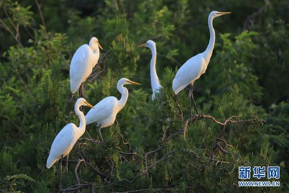 近日,大批鹭鸟陆续飞抵江苏盱眙戚大山森林公园,给春日的绿林增添勃勃生机。