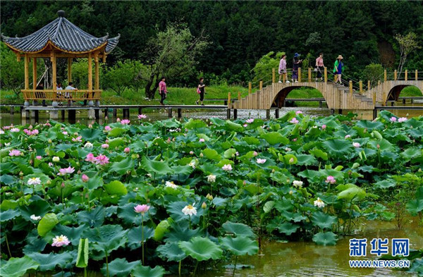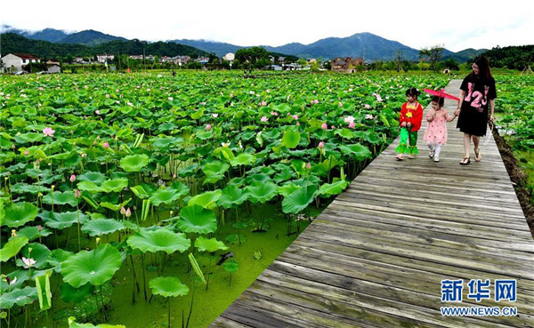 近年来,福建省武夷山市五夫镇在乡村振兴中把发展特色种植业和旅游产业结合起来,大面积种植荷花,吸引众多游客前来观赏,有效带动乡村经济的发展。新华社记者 张国俊 摄