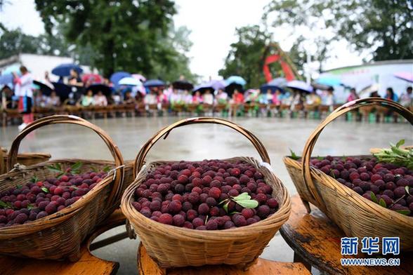 这是6月3日在贵州省榕江县高文苗寨拍摄的刚采摘的杨梅。当日,贵州省黔东南苗族侗族自治州榕江县高文苗寨举办杨梅节,吸引众多游客参加“杨梅大王”评选、吃杨梅比赛、吹芦笙、跳芦笙舞等趣味活动。新华社发(黄万鑫 摄)