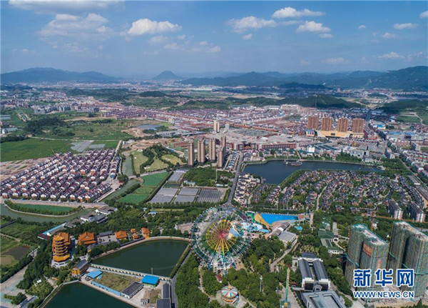 空中俯瞰浙江东阳花园村全景(6月27日无人机拍摄)。地处浙江中部的东阳市花园村曾经是一个“村名花园不长花、草棚泥房穷人家”的穷山村。秉持着“以工富农、以商兴村”的发展理念,花园村积极发展传统产业,培育新兴产业,经过不断发展,如今已成为国内最大的红木家具专业市场,被誉为“红木第一村”。近年来,花园村实施大规模旧村改造,兴建了一批旅游景点和特色商业街道,以村为单位创建了国家AAAA级旅游景区。花园村先后被授予“全国模范村”“全国文明村”“中国十大名村”“中国十佳小康村”“中国旅游特色村”“中国幸福村”等诸多荣誉,是老百姓安居乐业的美丽乡村。2016年,花园村党委被中共中央授予“全国先进基层党组织”荣誉称号。2017年,花园村实现营业收入520.63亿元,村民人均年收入达12万元,被誉为浙江农村现代化的典范。新华社记者 徐昱 摄