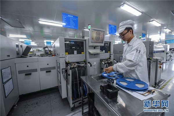 花园金波科技股份有限公司工作人员在车间的生产线上制造智能控制芯片产品(6月28日摄)。该公司是国家高新技术企业,产品覆盖汽车、光伏、家电等行业。地处浙江中部的东阳市花园村曾经是一个“村名花园不长花、草棚泥房穷人家”的穷山村。秉持着“以工富农、以商兴村”的发展理念,花园村积极发展传统产业,培育新兴产业,经过不断发展,如今已成为国内最大的红木家具专业市场,被誉为“红木第一村”。近年来,花园村实施大规模旧村改造,兴建了一批旅游景点和特色商业街道,以村为单位创建了国家AAAA级旅游景区。花园村先后被授予“全国模范村”“全国文明村”“中国十大名村”“中国十佳小康村”“中国旅游特色村”“中国幸福村”等诸多荣誉,是老百姓安居乐业的美丽乡村。2016年,花园村党委被中共中央授予“全国先进基层党组织”荣誉称号。2017年,花园村实现营业收入520.63亿元,村民人均年收入达12万元,被誉为浙江农村现代化的典范。新华社记者 徐昱 摄