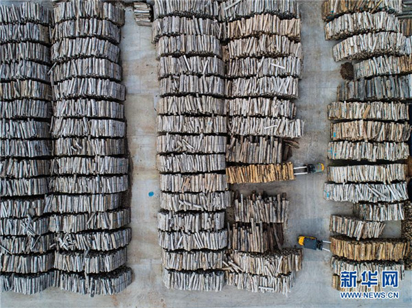 这是6月27日无人机拍摄的花园大型原木市场和板材市场。该市场集聚了30多个国家和地区的40多个名贵木材品种,为花园村以及周边村镇红木家具企业提供原材料。地处浙江中部的东阳市花园村曾经是一个“村名花园不长花、草棚泥房穷人家”的穷山村。秉持着“以工富农、以商兴村”的发展理念,花园村积极发展传统产业,培育新兴产业,经过不断发展,如今已成为国内最大的红木家具专业市场,被誉为“红木第一村”。近年来,花园村实施大规模旧村改造,兴建了一批旅游景点和特色商业街道,以村为单位创建了国家AAAA级旅游景区。花园村先后被授予“全国模范村”“全国文明村”“中国十大名村”“中国十佳小康村”“中国旅游特色村”“中国幸福村”等诸多荣誉,是老百姓安居乐业的美丽乡村。2016年,花园村党委被中共中央授予“全国先进基层党组织”荣誉称号。2017年,花园村实现营业收入520.63亿元,村民人均年收入达12万元,被誉为浙江农村现代化的典范。新华社记者 徐昱 摄