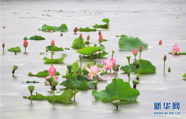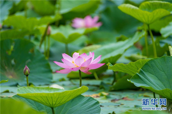 这是7月6日在江苏省淮安市洪泽区东湖公园拍摄的荷花。小暑节气将至,荷塘中盛开的荷花为夏日增添了一抹亮色。 新华社发(王开成 摄)