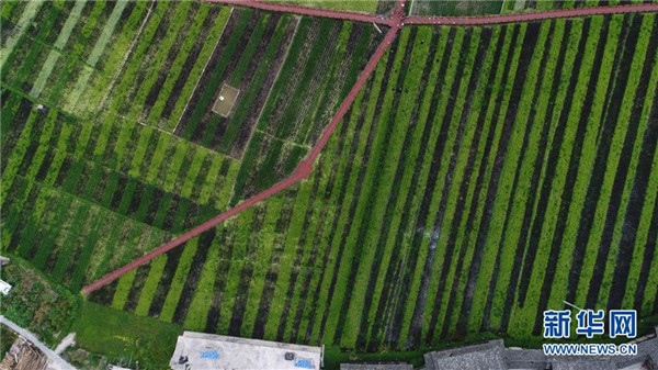 7月24日,阳芳村村民在“五彩稻谷”田间劳作(无人机拍摄)。 时值盛夏,贵州台江县台盘乡阳芳村处于生长期的“五彩稻谷”长势喜人。这种稻谷成熟后米粒将呈现黑、紫、粉红、紫红、白五种颜色。 在当地驻村干部和浙江大学农学院教授的帮助下,阳芳村自2016年开始试种非杂交的生态五彩稻谷。2017年,该村种植的80余亩“五彩稻谷”收成后被订购一空,每亩“五彩稻谷”创收5800余元,总收益近50万元。 今年,尝到甜头的村民积极参与“五彩稻谷”种植,将种植面积扩大到100余亩。 新华社记者 杨楹 摄