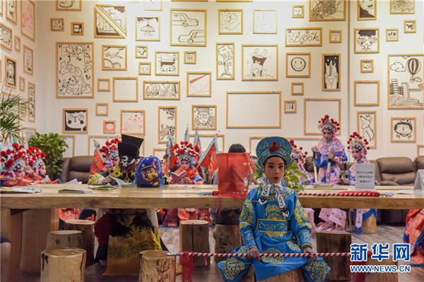 在合肥市凿壁偷光图书城,参演的学生在候场(9月4日摄)。9月4日,安徽省合肥经开区第二届“戏曲进校园”比赛暨学校少年宫戏曲社团展演在该市凿壁偷光图书城举行,14所中小学的近200名学生登台献艺。新华社记者 郭晨 摄