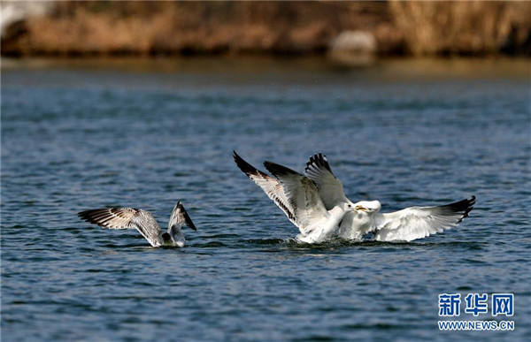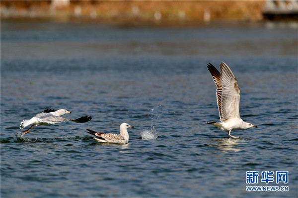 海鸥栖息在大明湖上(2月7日摄)。 新华社记者 张汝锋 摄