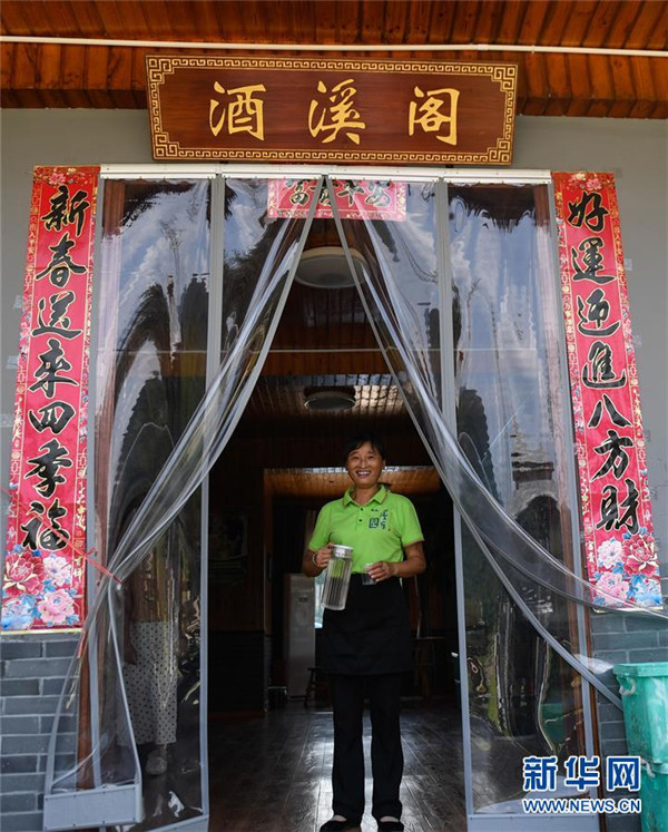 7月25日,合村乡后溪村前柏自然村村民徐美林在“竹溪乐园”的餐厅准备为客人倒茶水。合村乡的全域旅游项目吸纳了大批村民就业。近年来,浙江省桐庐县合村乡着力打造以“运动探险”为主打的乡村旅游品牌,重点建设田园风情带、民俗文化带、民宿集聚带和运动休闲带“四条精品带”,提升全域景区一体化、多样化、个性化,助力乡村振兴。 新华社记者 黄宗治 摄