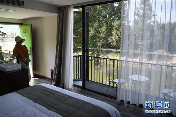 这是7月25日拍摄的合村乡“在水一方”集装箱主题精品民宿内景。集装箱民宿由19个彩色集装箱组成,项目的资金由村民众筹而来。近年来,浙江省桐庐县合村乡着力打造以“运动探险”为主打的乡村旅游品牌,重点建设田园风情带、民俗文化带、民宿集聚带和运动休闲带“四条精品带”,提升全域景区一体化、多样化、个性化,助力乡村振兴。 新华社记者 黄宗治 摄