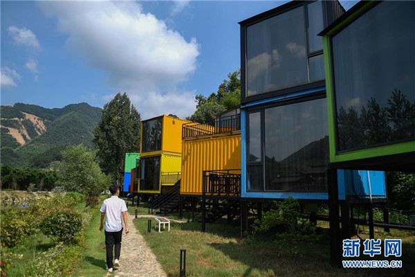 7月25日,游客行走在合村乡“在水一方”集装箱主题精品民宿边。集装箱民宿由19个彩色集装箱组成,项目的资金由村民众筹而来。近年来,浙江省桐庐县合村乡着力打造以“运动探险”为主打的乡村旅游品牌,重点建设田园风情带、民俗文化带、民宿集聚带和运动休闲带“四条精品带”,提升全域景区一体化、多样化、个性化,助力乡村振兴。 新华社记者 黄宗治 摄