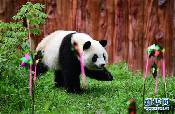 当日,大熊猫“初心”在吉林省长春市东北虎园熊猫馆迎来3周岁生日,园方工作人员和游客为“初心”举办了一场别开生面的生日派对。
