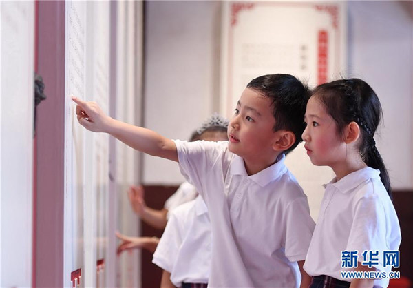 7月30日,学生们在位于福州市台江区的古代特色建筑“古田会馆”参观。当日,福州金山小学的几名学生在老师的带领下到福州三坊七巷、鳌峰坊等处感受闽都文化,丰富暑期生活。 新华社记者 林善传 摄