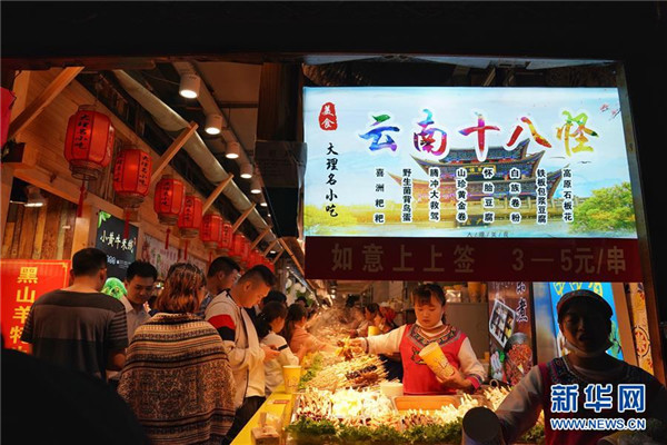 8月10日,游客在大理古城店铺购买云南特色美食。新华社记者 秦晴 摄