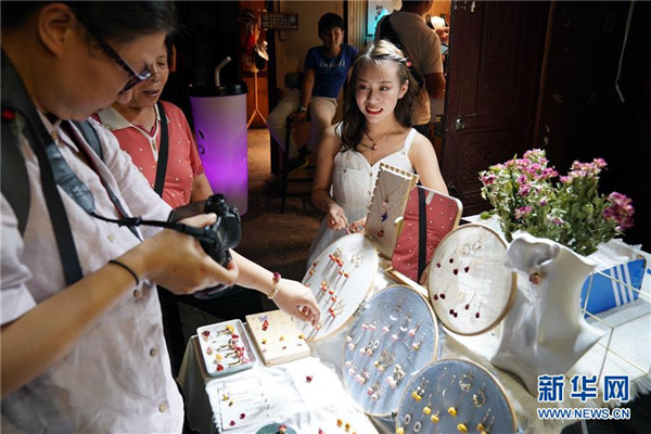 8月10日,游客在大理古城挑选饰品。新华社记者 秦晴 摄