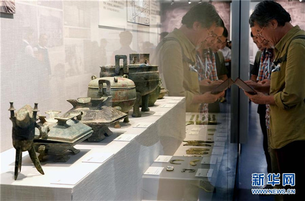 8月27日,志愿者在展览现场向参观者讲述考古知识。新华社记者 李贺 摄