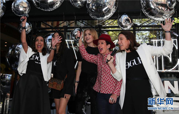 9月5日,在澳大利亚悉尼市中心皮特街购物区,悉尼市长克洛弗·穆尔(右二)和其他嘉宾参加开幕活动。当日,第十届悉尼“流行风尚之夜”在悉尼市中心皮特街购物区开幕。该主题活动旨在促进消费,扶持时尚产业,促进经济发展。 新华社记者白雪飞摄
