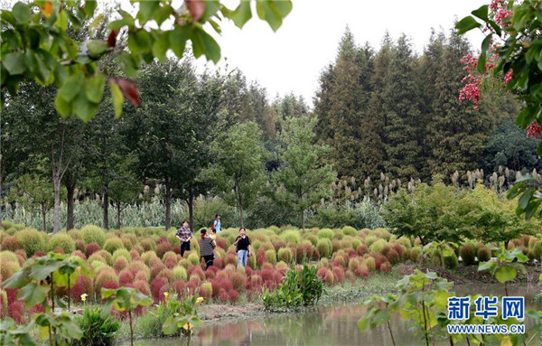 10月7日,游人在地肤园中游览。新华社记者 方喆 摄