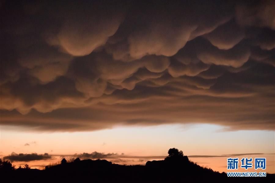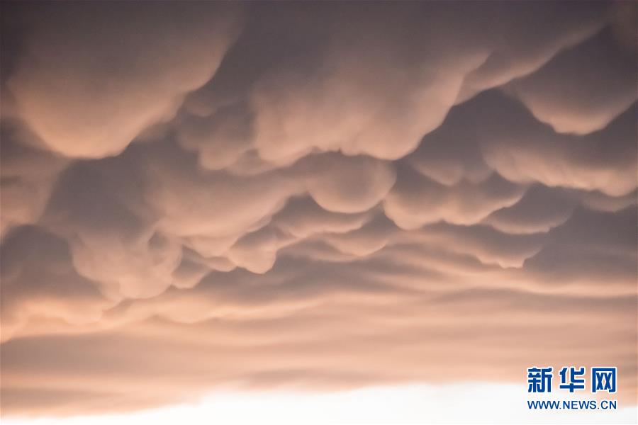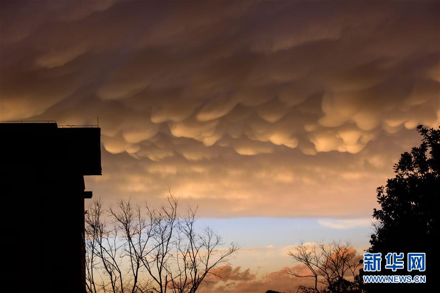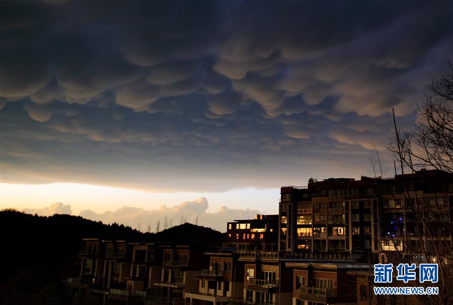 这是1月6日在贵阳上空出现的“乳状云”。 当日傍晚,贵阳上空出现“乳状云”。据了解,乳状云又称“乳状积云”,是指形状与牛乳房相似的云层。 新华社记者 刘续 摄