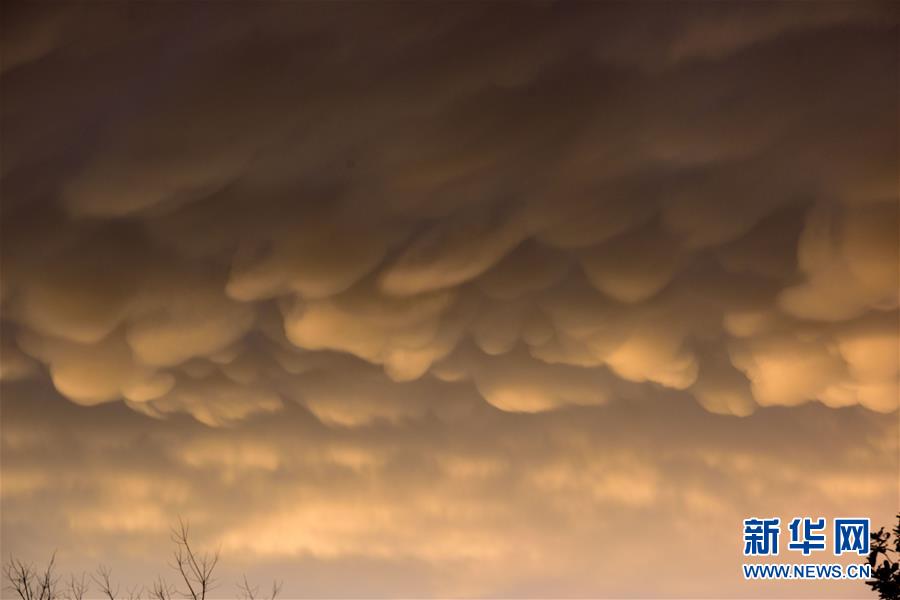 这是1月6日在贵阳上空出现的“乳状云”。 当日傍晚,贵阳上空出现“乳状云”。据了解,乳状云又称“乳状积云”,是指形状与牛乳房相似的云层。 新华社记者 刘续 摄