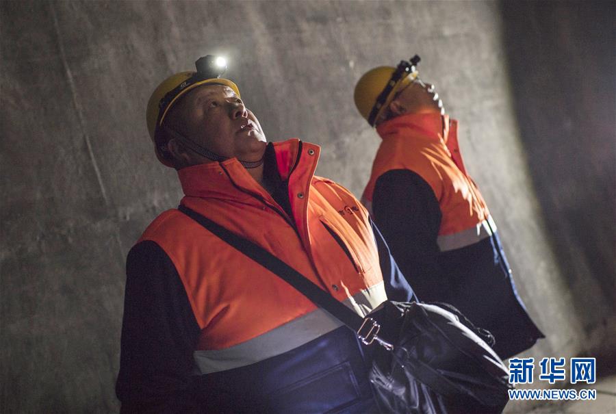 通化通信车间无线工区铁路通信工人检查隧道顶部通信线缆(1月10日摄)。 2020年春运1月10日拉开帷幕。无数旅客平安出行的背后,是无数基层铁路工人的付出和坚守,中国铁路沈阳局集团有限公司吉林电务段通化通信车间无线工区的铁路通信工人便是其中之一。他们在长白山区饮风踏雪,为保障辖区隧道内铁路通信信号传输全天候畅通而日夜奔行。 新华社记者 许畅摄