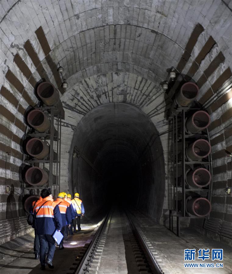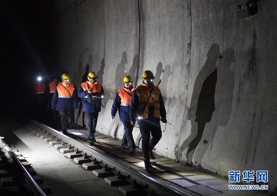 通化通信车间无线工区铁路通信工人进入全长7088米的湾湾川隧道作业(1月10日摄)。 2020年春运1月10日拉开帷幕。无数旅客平安出行的背后,是无数基层铁路工人的付出和坚守,中国铁路沈阳局集团有限公司吉林电务段通化通信车间无线工区的铁路通信工人便是其中之一。他们在长白山区饮风踏雪,为保障辖区隧道内铁路通信信号传输全天候畅通而日夜奔行。 新华社记者 许畅摄