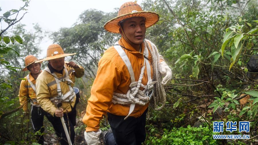 1月14日,百色工务段白水河桥隧工区班组成员在搜山扫石。 在中国铁路南宁局集团公司百色工务段白水河桥隧工区,有一个由14名工人组成的班组。他们常年像“爬山虎”一样行走攀爬在地形险峻、云雾缭绕的高山上,负责南昆铁路辖区路段的搜山扫石工作,清除一切可能危害铁路行车安全的因素,保障旅客出行安全。 新华社记者 张爱林 摄