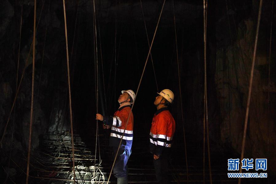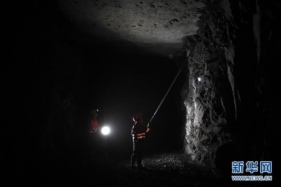 1月14日,在金川集团三矿区采矿工区,工人郝江山(左)和高鹏进行进路充填准备工作的质量验收。 春节临近,位于甘肃河西走廊的中国“镍都”金昌市寒意逼人,但在金川集团股份有限公司地面以下600多米的三矿区各生产工区依旧一派热火朝天的工作场景。这里全年24小时生产,工人们坚守各自岗位,确保井下作业安全有序。 新华社记者 马宁 摄