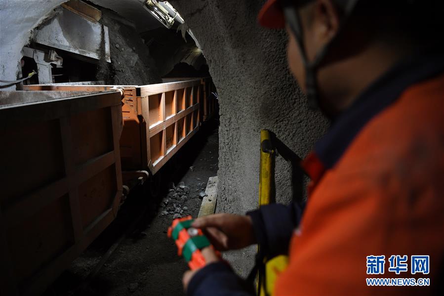 1月14日,工人在金川集团三矿区采矿工区工作。 春节临近,位于甘肃河西走廊的中国“镍都”金昌市寒意逼人,但在金川集团股份有限公司地面以下600多米的三矿区各生产工区依旧一派热火朝天的工作场景。这里全年24小时生产,工人们坚守各自岗位,确保井下作业安全有序。 新华社记者 马宁 摄