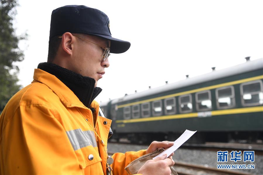 茄子溪车站连结员李涛在工作中(1月21日摄)。 新华社记者 唐奕 摄