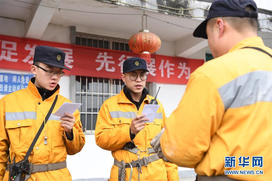 茄子溪车站连结员李涛与同事在熟悉调车作业计划(1月21日摄)。 新华社记者 唐奕 摄