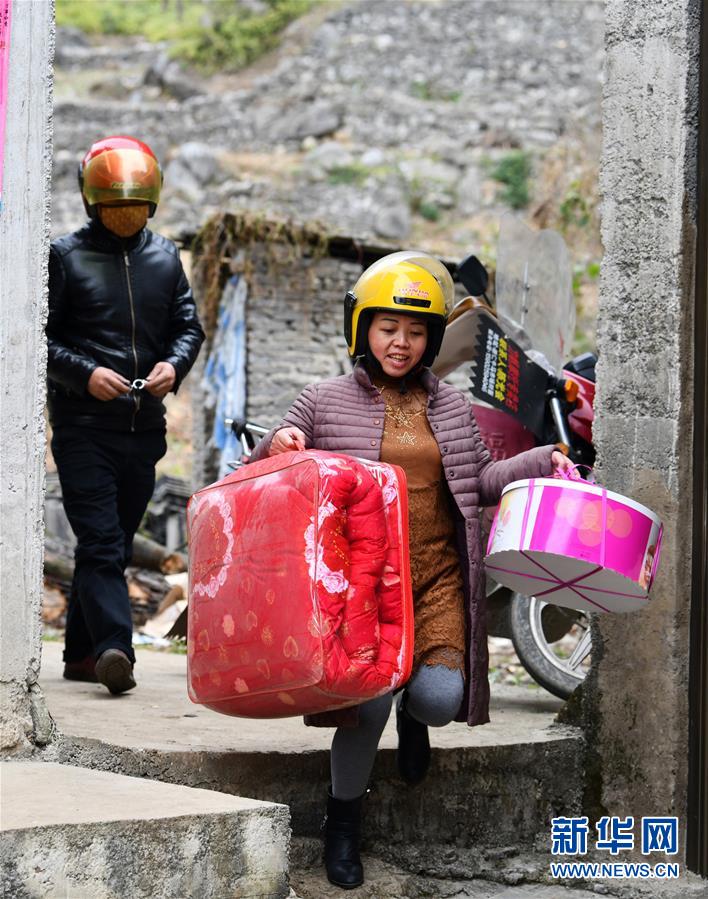 1月22日,贵州省黔西县新仁乡化屋村外出务工村民杨文胜与妻子回到家中。 春节将至,贵州省毕节市黔西县在外务工的人们纷纷返回家乡,他们换乘高铁、汽车,有的还要骑摩托车……只为赶回家乡与家人团聚。近年来,随着贵州县县通高速、乡乡通油路、村村通水泥路、组组通公路的“大交通”网络逐渐形成,人们回家的“最后一公里”不再难。 新华社记者 杨文斌 摄