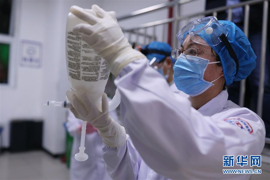 2月2日,工作人员在调配消毒水,准备对动车组车厢进行消毒。 为做好疫情防控,保障乘客安全,中国铁路成都局集团有限公司贵阳车辆段贵阳北动车运用所与中国铁路成都局集团有限公司贵阳疾病预防控制中心的工作人员,近日从每天晚上七点至第二天凌晨五点半,对动车运用所的所有终到列车开展消毒防疫工作,确保每一列从贵阳开出的列车都经过严格细致的消毒。 新华社记者 欧东衢 摄