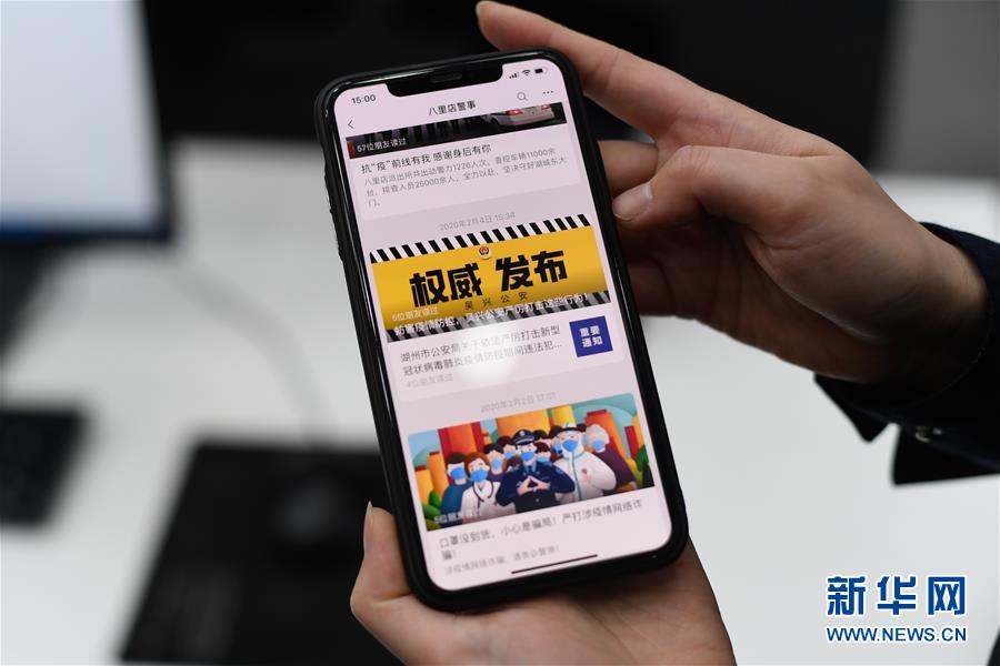 吴兴区八里店镇派出所微信公众号推送的文章(2月20日摄)。疫情发生以来,八里店镇派出所借助微信公众号、微信群等平台及时向群众推送疫情防控相关法律知识。 近期,浙江省湖州市吴兴区八里店镇通过多种手段和渠道,加强法治宣传,号召群众积极配合,确保新冠肺炎疫情防控工作顺利开展。 新华社记者黄宗治摄