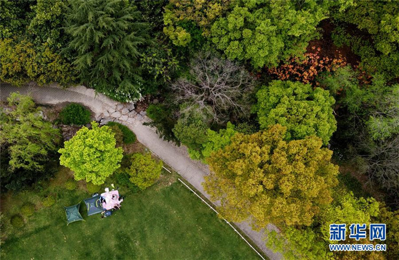 这是4月14日拍摄的上海世纪公园一景(无人机照片)。 春暖花开时节,坐落于浦东新区的上海世纪公园迎来美丽斑斓的“彩色季”。世纪公园拥有大面积的草坪、森林、湖泊,是深受上海市民喜爱的观景和休闲之地。 新华社记者 刘颖 摄