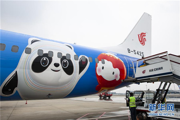 9月5日,“冬奥冰雪号”彩绘飞机在成都双流国际机场降落。 当日,从北京出发的北京2022年冬奥会和冬残奥会首架主题彩绘飞机“冬奥冰雪号”抵达成都完成首航。 新华社记者胥冰洁摄