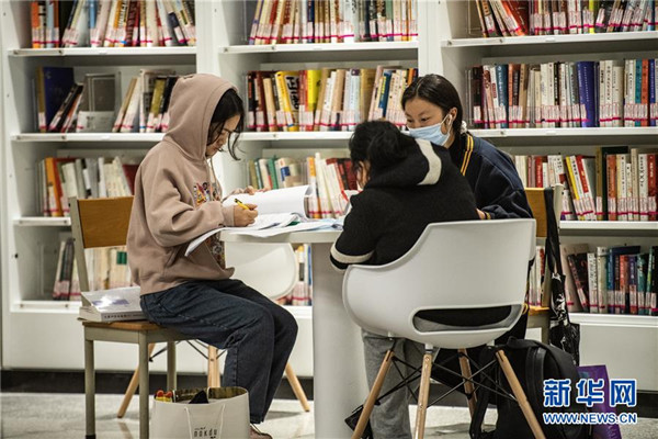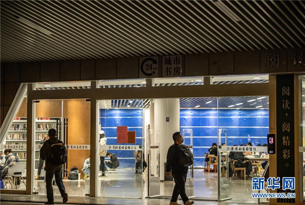 10月8日晚,市民走进贵州省图书馆24小时城市书房。 日前,贵州省图书馆打造的24小时城市书房正式对外开放,城市书房配有纸质书近万册,阅览座席30余个。城市书房提供24小时图书自助阅览、自助借还及自修服务,给市民们带来了一个全时段阅读、学习的好去处。 新华社记者 陶亮 摄
