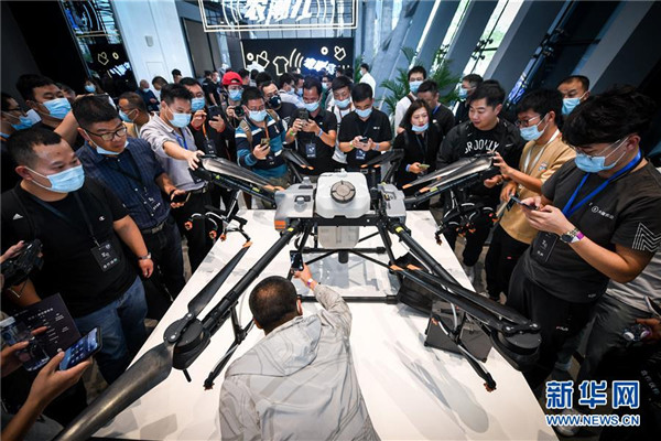 11月9日,参会者在发布会后了解大疆农业植保无人机T30。 当日,大疆农业在深圳发布T30、T10两款新品植保无人机。据介绍,T30最大载重30千克,每小时作业效率可达240亩次,并增加变形翼设计,提升果树飞防效果。T10植保无人机针对小地块使用,机身轻便,单人即可操作。 新华社记者 毛思倩 摄