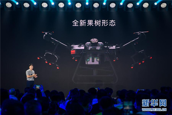 11月9日,大疆农业全球市场销售总监陈韬在发布会上介绍植保无人机T30。 当日,大疆农业在深圳发布T30、T10两款新品植保无人机。据介绍,T30最大载重30千克,每小时作业效率可达240亩次,并增加变形翼设计,提升果树飞防效果。T10植保无人机针对小地块使用,机身轻便,单人即可操作。 新华社记者 毛思倩 摄
