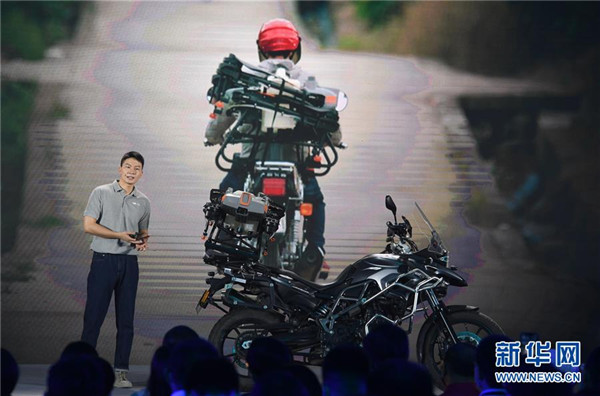 11月9日,大疆农业全球市场销售总监陈韬在发布会上介绍可装载在摩托车上的植保无人机T10。 当日,大疆农业在深圳发布T30、T10两款新品植保无人机。据介绍,T30最大载重30千克,每小时作业效率可达240亩次,并增加变形翼设计,提升果树飞防效果。T10植保无人机针对小地块使用,机身轻便,单人即可操作。 新华社记者 毛思倩 摄