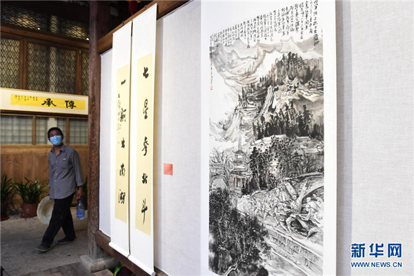“光辉百年——福建省书画名家作品邀请展”上展出的美术作品(5月15日摄)。