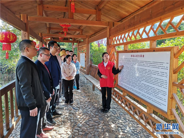 龙岩市新时代文明实践中心志愿者在杨成武将军故居为党员干部宣讲(3月25日摄)。