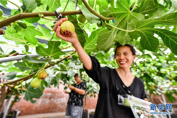 7月11日,游客在河北省滦州市鸡冠山生态农业产业园内采摘水果。