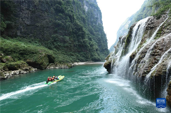 国庆假期,湖南省张家界市天气晴好。在素有“百里画廊”之称的茅岩河风景区,水上漂流项目受到游人青睐。