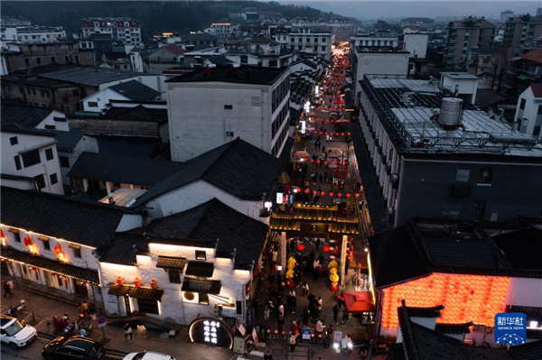 2月14日,空中俯瞰寿昌镇老街(无人机照片)。